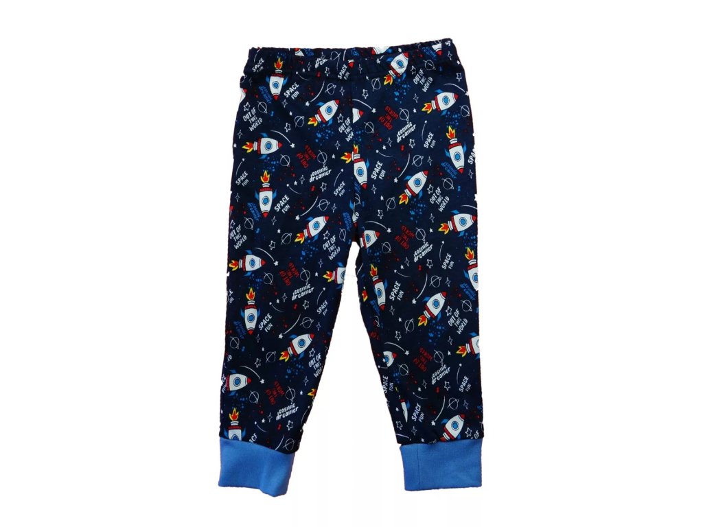 Nohavice s elastickým pásom sa ľahko obliekajú a dokonale kopírujú aktívny životný štýl malých chlapcov - či už sa hrajú v pyžamových nohaviciach alebo si už kladú hlavu spať. Tento kvalitný maďarský výrobok I. triedy je odolný, no zároveň jemne mäkký na dotyk, takže si dlho zachováva svoju krásu a tvar.