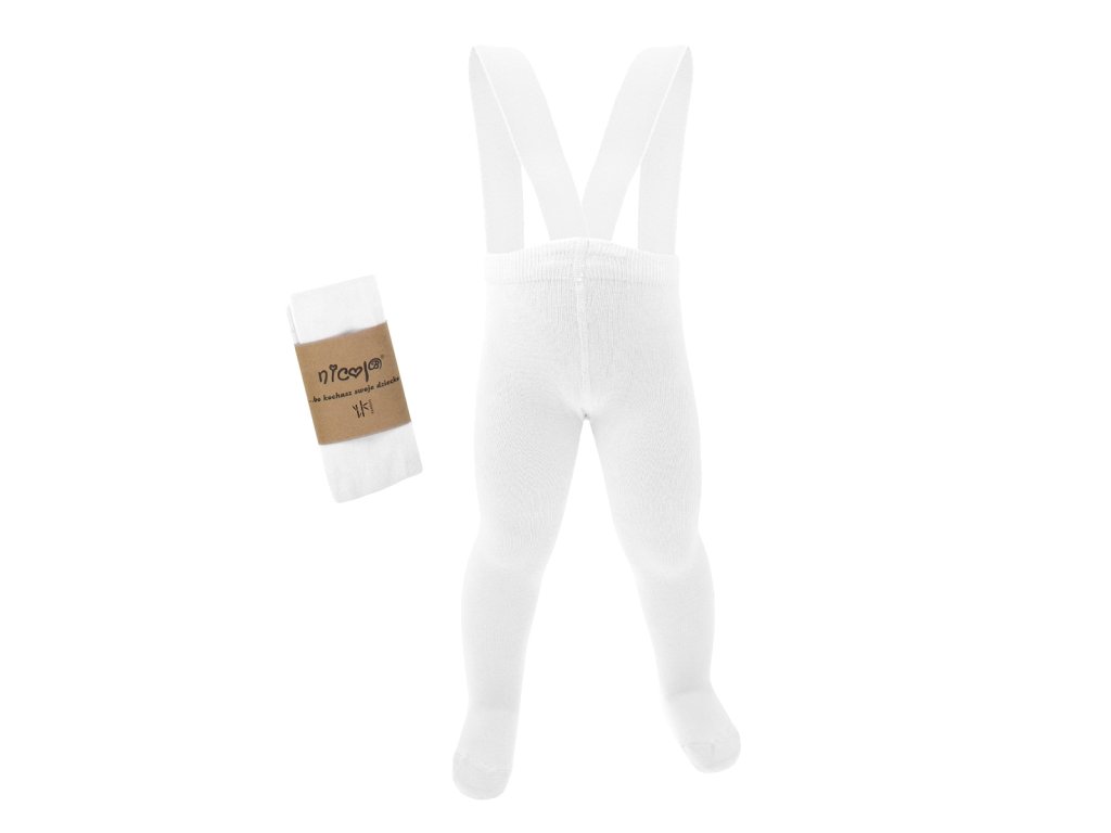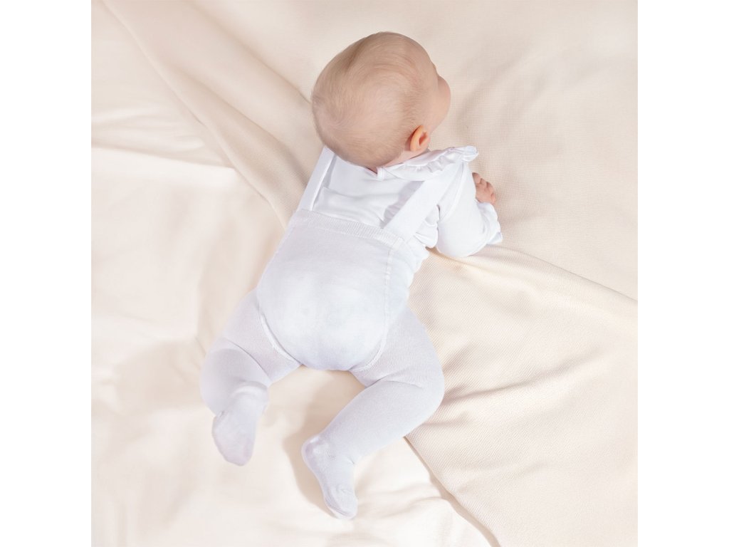 Mäkké a pohodlné pančuchy na traky v bielej farbe, ktoré sú ideálne na chladnejšie dni. Vstavané ramienka ich držia na mieste bez nutnosti vyťahovania. Držia plienku vášho bábätka na mieste. Vysokokvalitný materiál je príjemný na dotyk a nedráždi citlivú pokožku bábätka. Jemná gumička navyše netlačí na bruško vášho bábätka a široké ramienka sa vám nebudú zarezávať do ramien.