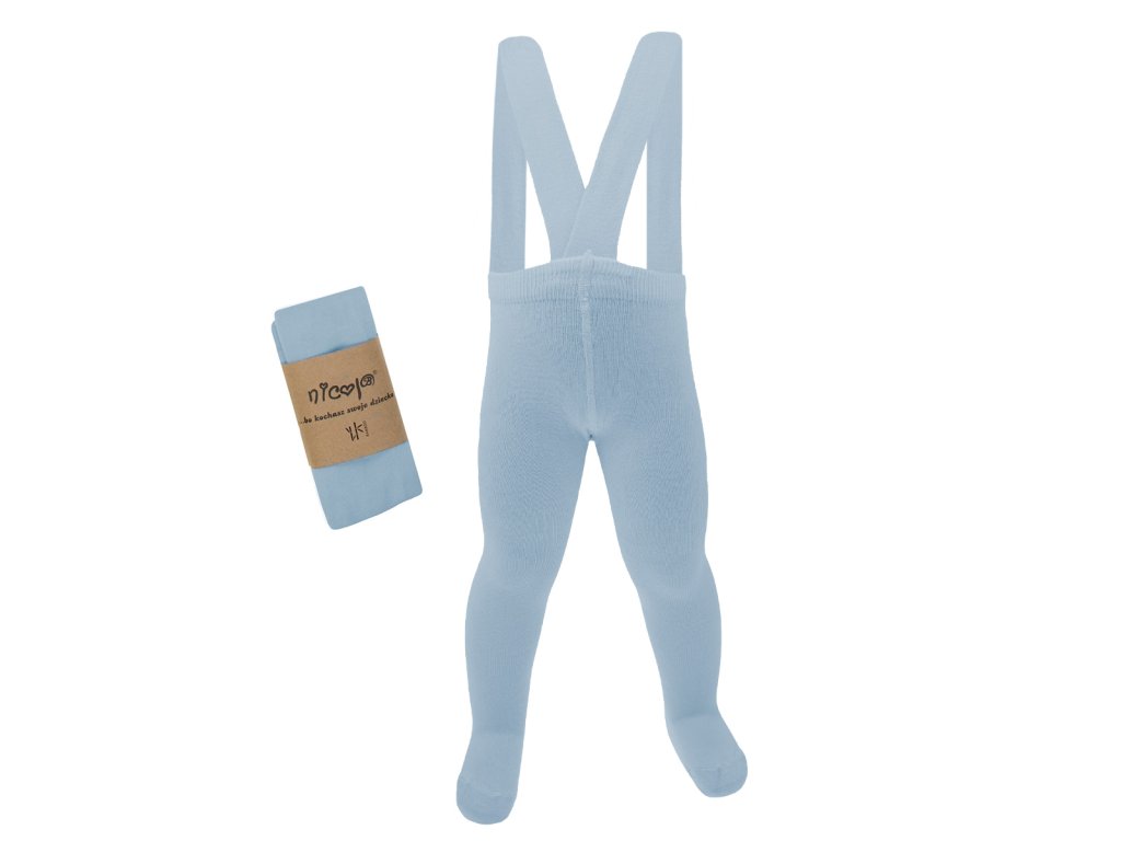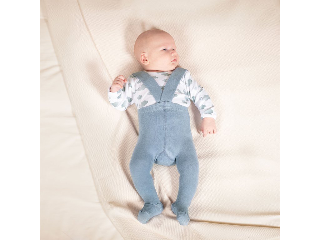 Mäkké a pohodlné slabomodré pančuchy na traky. Ideálne na chladnejšie dni. Vstavané ramienka ich držia na mieste a zabraňujú ich skĺznutiu. Držia plienku vášho bábätka na mieste. Vysokokvalitný materiál je príjemný na dotyk a nedráždi citlivú pokožku vášho bábätka. Jemná gumička navyše netlačí na bruško vášho bábätka a široké ramienka sa nezarezávajú do ramien.