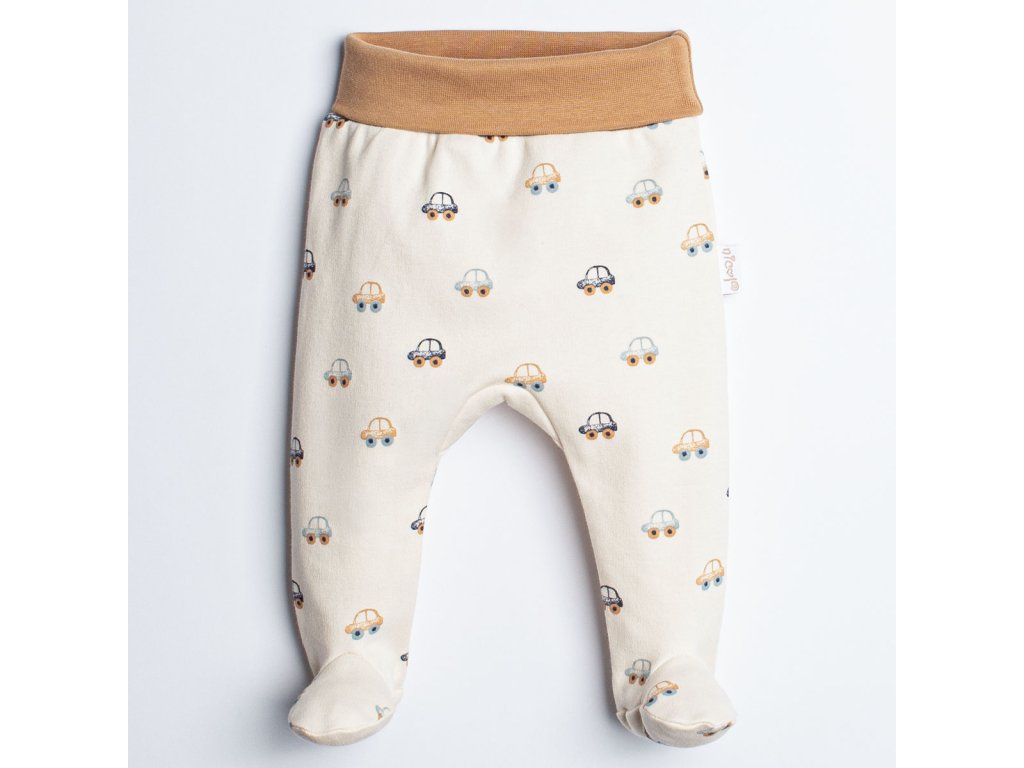 Pohodlné a mäkké polodupačky vyrobené z krémovej 100 % potlačenej bavlny. Farebná potlač auta evokuje klasický chlapčenský dizajn. Vysokokvalitný materiál je certifikovaný certifikátom Oeko-Tex Standard 100 „Trustworthy Textiles“. Výrobok má voľný strih a mierne znížený pás pre plienku. Široký, neviazaný elastický pás zaisťuje úplné pohodlie pre vaše dieťatko. Polodupačky sú tiež neoddeliteľnou súčasťou prvej detskej výbavy.
