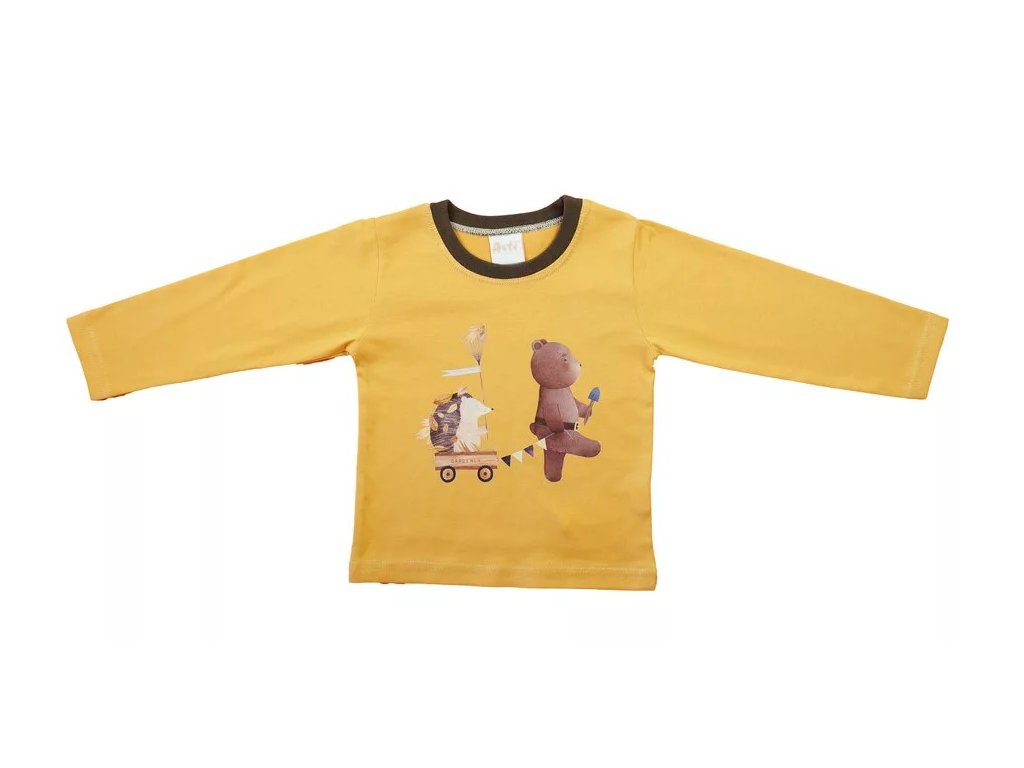 Skutočne rozkošný kúsok, ktorý rozžiari šatník každého malého chlapca! Veselý vzor medvedíka nielenže pozýva deti na hru, ale aj vyčarí úsmev na tvári každej mamičky. Mäkký, 100% bavlnený materiál jemne prilieha k pokožke, je dobre vetraný a poskytuje pohodlie po celý deň, či už v jasliach, škôlke alebo pri hraní doma. Vďaka priliehavému riešeniu pri krku sa dá ľahko obliecť a kvalitná maďarská výroba zaručuje odolnosť a zachovanie farby a tvaru.