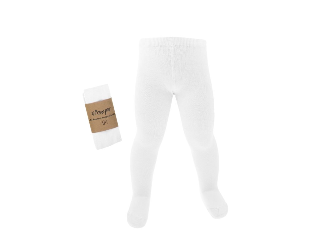 Mäkké a pohodlné biele pančuchy vyrobené z vysoko kvalitného materiálu. Neobmedzujú pohyb vášho dieťaťa a poskytujú tepelný komfort v chladných dňoch. Ich módny a nadčasový dizajn doplní mnoho outfitov. Široký elastický pás zaisťuje priliehavé priliehanie okolo bruška vášho dieťaťa a zabraňuje skĺznutiu pri nosení.