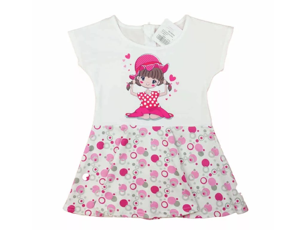 Dievčenské bavlnené šaty s krátkym rukávom a vírivou sukňou
