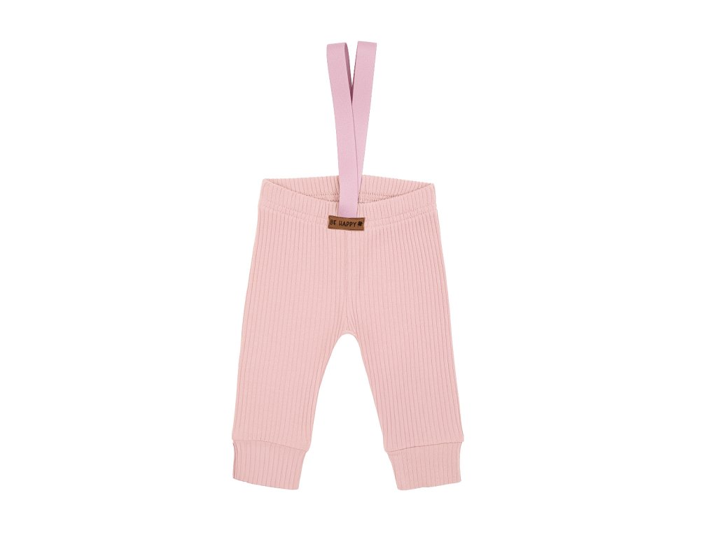 Pohodlné nohavice na traky pre dievčatá. Vyrobené z púdrovej ružovej bavlny s pridaným elastanom. Traky zabraňujú ich skĺznutiu a bezpečne držia plienku vášho bábätka. Materiál je bezpečný pre detskú pokožku.