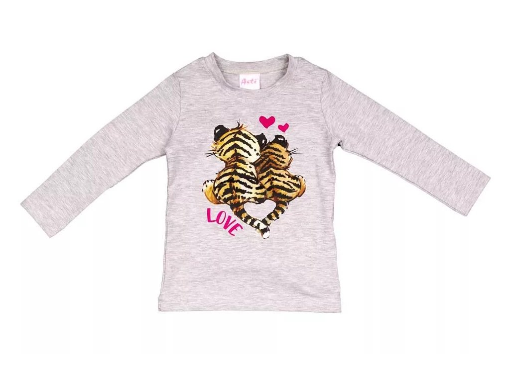 Získajte si srdce svojho dievčatka s týmto svetlosivým tričkom s dlhým rukávom a roztomilým tigrím vzorom! Vyrobené z kvalitnej 95 % bavlny a 5 % elastanu, čo zaručuje pohodlie a odolnosť. Ideálne na dni v škôlke, na ihriská alebo rodinné stretnutia. Tričko sa dá ľahko kombinovať s džínsami, takže vášmu dievčatku dodá roztomilý vzhľad. Ľahko sa oň stará, je prateľné a drží si farbu aj tvar, takže si dlho zachováva svoju pôvodnú krásu. Môžeme s hrdosťou povedať, že tento výrobok je vyrobený z maďarských kvalitných, prvotriednych materiálov.