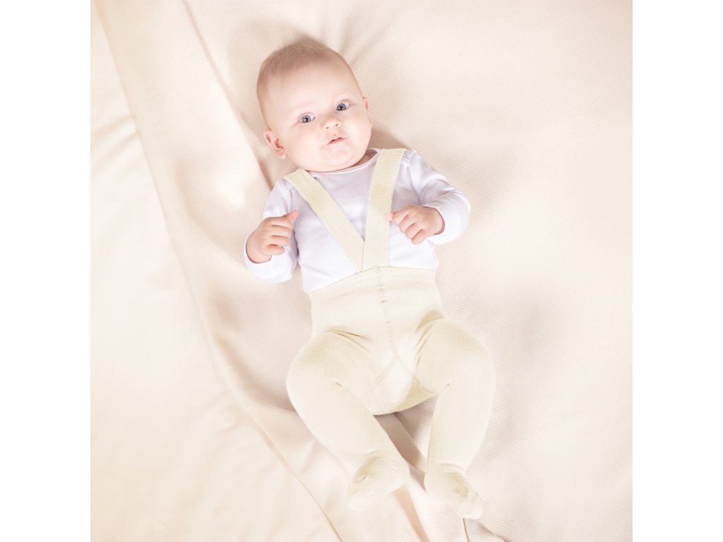 Mäkké a pohodlné pančuchy na traky v krémovej farbe. Ideálne na chladnejšie dni. Vstavané ramienka ich držia na mieste bez nutnosti vyťahovania. Držia plienku vášho bábätka na mieste. Vysokokvalitný materiál je príjemný na dotyk a nedráždi citlivú pokožku bábätka. Jemná gumička navyše netlačí na bruško vášho bábätka a široké ramienka sa vám nebudú zarezávať do ramien.