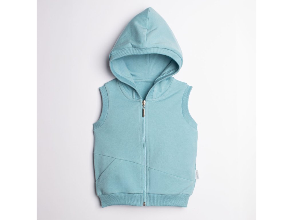 Táto funkčná vesta s kapucňou pre chlapcov je vyrobená z teplákovej bavlny s malým množstvom elastanu. Je vyrobená v krásnej modrej farbe. Materiál je certifikovaný podľa štandardu Oeko-Tex Standard 100 "Trustworthy Textiles". Má zaujímavý dizajn. Predná časť je diagonálne strihaná s praktickým vreckom na pravej strane. Podpazušie, kapucňa a pás sú zakončené sťahovacou šnúrkou. Tento produkt je veľmi užitočným doplnkom detského šatníka. Chráni pred chladom a zároveň poskytuje slobodu pohybu a pohodlie. Odporúča sa na prechádzky a rôzne aktivity.