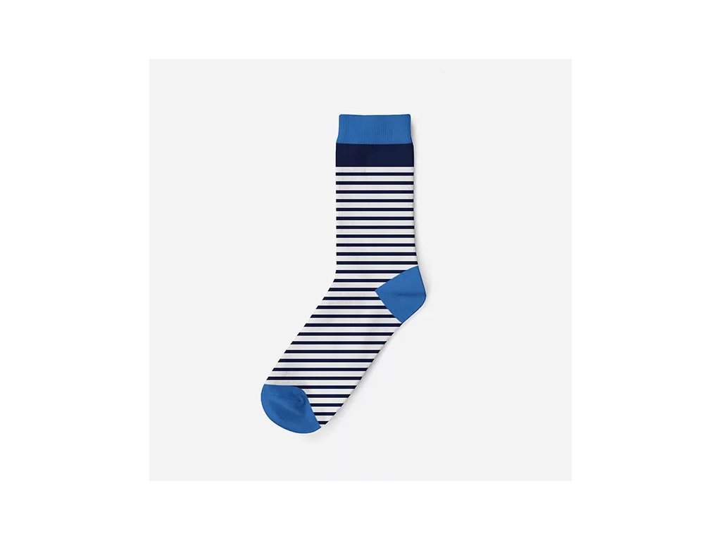 Pruhované ponožky v kombinácii bielej, čiernej a modrej farby s kontrastnou špičkou, pätou a lemom. Pohodlné a štýlové na každý deň. Ponožky sú príjemné na dotyk a dobre sedia na nohe. Kvalitný výrobok maďarskej výroby. Zloženie: 80% bavlna, 15% polyamid, 5% elastan.