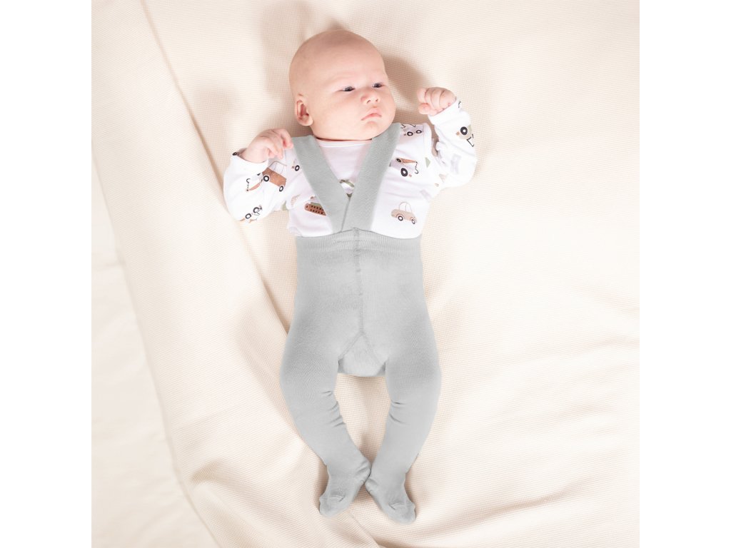 Mäkké a pohodlné sivé pančuchy na traky. Ideálne na chladnejšie dni. Vstavané ramienka ich držia na mieste a zabraňujú ich skĺznutiu. Držia plienku vášho bábätka na mieste. Vysokokvalitný materiál je príjemný na dotyk a nedráždi citlivú pokožku vášho bábätka. Jemná gumička navyše netlačí na bruško vášho bábätka a široké ramienka sa nezarezávajú do ramien.