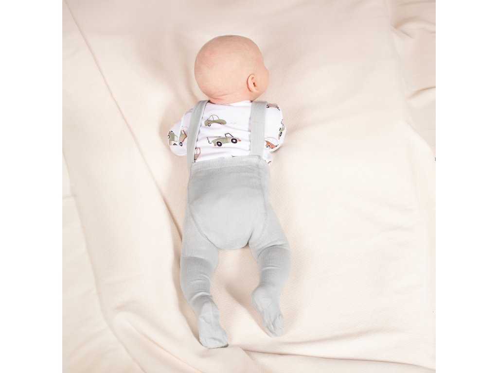 Mäkké a pohodlné pančuchy na traky v popolavo sivej farbe. Ideálne na chladnejšie dni. Vstavané ramienka ich držia na mieste bez nutnosti vyťahovania. Držia plienku vášho bábätka na mieste. Vysokokvalitný materiál je príjemný na dotyk a nedráždi citlivú pokožku bábätka. Jemná gumička navyše netlačí na bruško vášho bábätka a široké ramienka sa vám nebudú zarezávať do ramien.