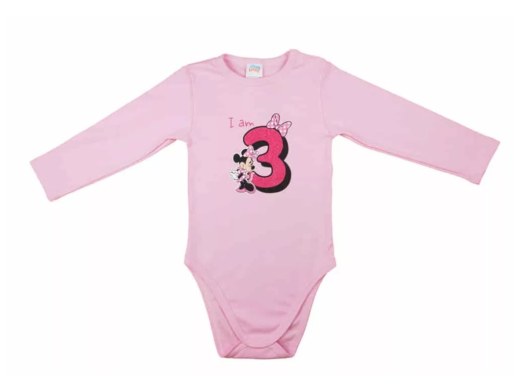 Oslavujte tretie narodeniny vášho drobčeka s týmto pôvabným narodeninovým body s motívom Disney Minnie! Toto ružové body s dlhým rukávom je zdobené pôvabným vzorom Minnie, ktorý zaručene vyčarí úsmev na tvári vám aj vášmu drobcovi. Originálny produkt Disney je vyrobený zo starostlivo vybraného 100 % bavlneného materiálu, ktorý zaručuje maximálne pohodlie a odolnosť. Prvotriedna kvalita a maďarský pôvod len umocňujú vynikajúcu kvalitu produktu. Zapínanie na ramená bez obsahu niklu sa ľahko ovláda a nespôsobuje alergické reakcie, vďaka čomu je ideálnou voľbou aj pre bábätká s citlivou pokožkou. Urobte tretie narodeniny nezabudnuteľnými s týmto roztomilým narodeninovým body s motívom Minnie!