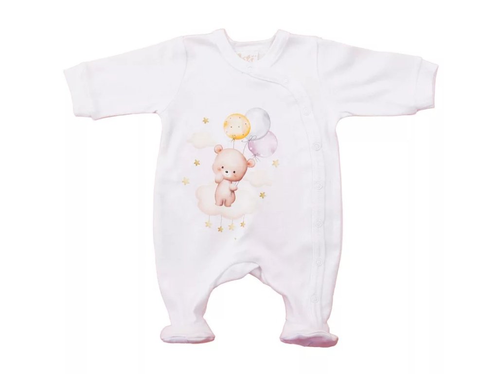 Rozkošné biele dupačky s jemnou potlačou macíka sú ako stvorené pre malé princezné. Mäkučká 100% bavlna je príjemná na dotyk a šetrná k detskej pokožke, takže zabezpečí pohodlie počas celého dňa aj noci. Praktické zapínanie na patentky po celej dĺžke uľahčuje obliekanie aj prebaľovanie. Dupačky majú dlhý rukáv a uzavreté nožičky, vďaka čomu udržia bábätko v teple a pohodlí.