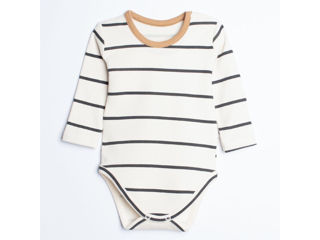Body s dlhým rukávom pre chlapcov, vyrobené zo 100 % krémovej potlačenej bavlny. Nadčasový grafitový pruhovaný vzor je vždy top módnym trendom. Toto body je neuveriteľne funkčné. Absencia odhaleného chrbta alebo bruška z neho robí perfektnú voľbu pre každé ročné obdobie. Tento model sa odporúča pre novorodencov, pretože zapínanie uľahčuje obliekanie bábätka. Materiál je úplne bezpečný pre detskú pokožku.